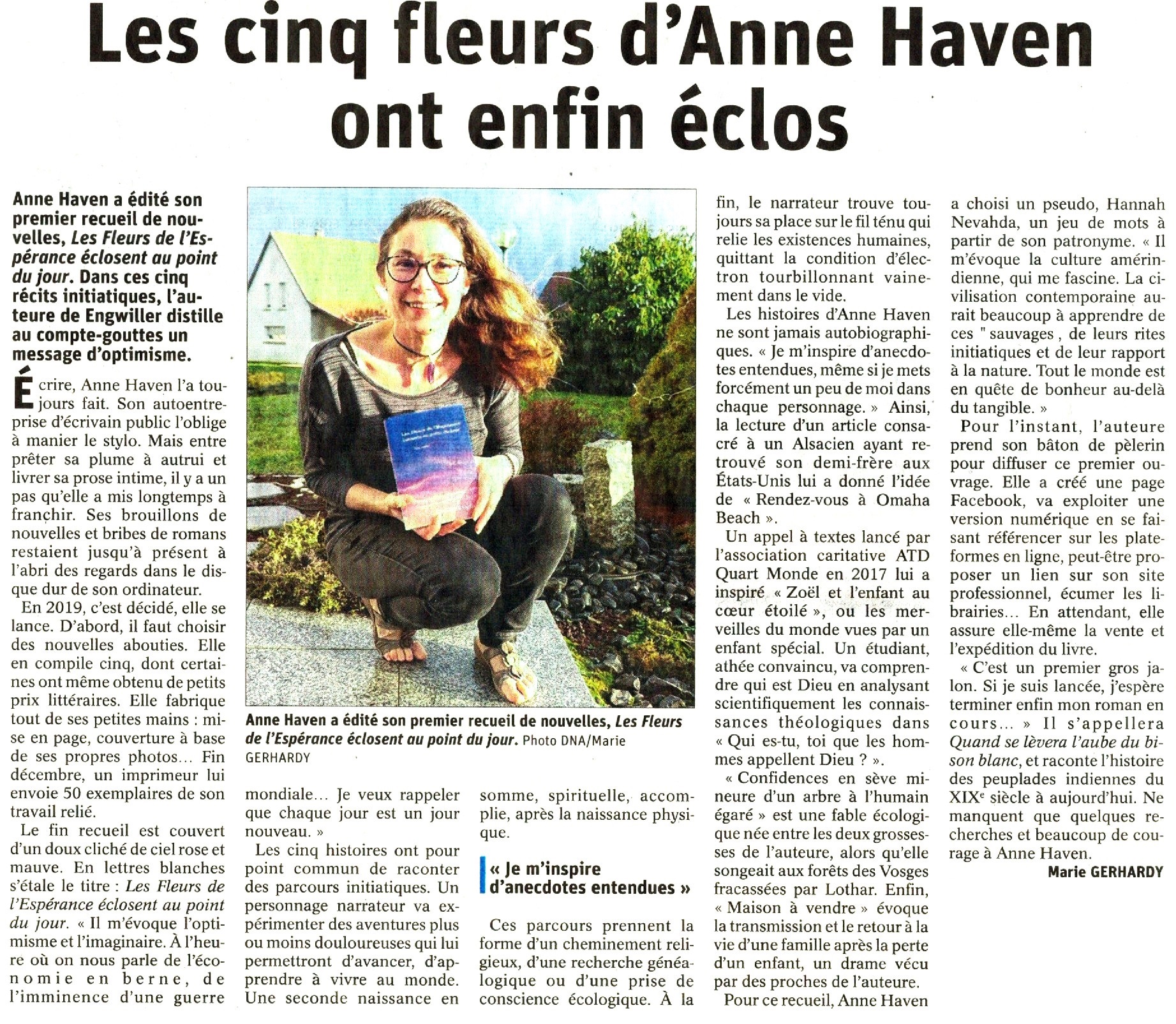 - Les cinq fleurs d’Anne Haven ont enfin éclos, Dernières Nouvelles d’Alsace, 13/01/2020